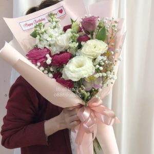 Bó hoa tone hồng nhẹ nhàng, style giấy gói Hàn Quốc hiện đai, sang trong, phù hợp để bạn gửi tặng người thân, bạn bè, đồng nghiệp nhân dịp sinh nhật hoặc bất kỳ dịp chúc mừng, kỷ niệm nào đó !