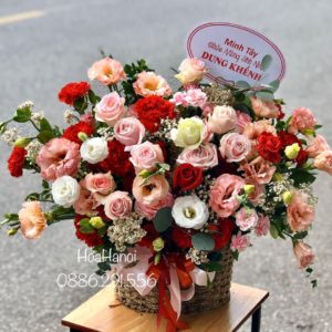 Hoa hồng đỏ kết hợp với những bông hồng trà dễ thương, vừa đủ dịu dàng nhưng cũng tươi tắn rực rỡ để dành tặng người thân, bạn bè những dịp chúc mừng khai trương, kỷ niệm. Size lẵng hoa và kiểu dáng có thể thay đổi tùy vào yêu cầu và mong muốn của khách hàng. Ngân sách cũng có thể ling động tùy theo bạn nhaa!